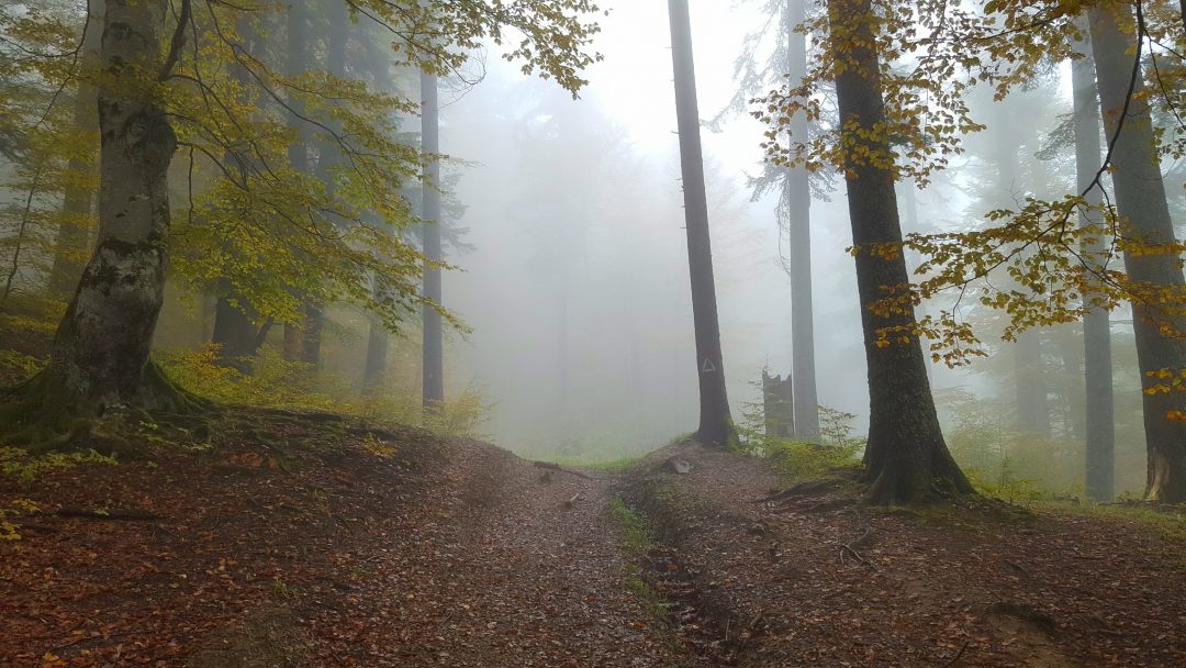 Mersesem prin pădure cam o oră și jumătate admirând natura, atât cât puteam vedea prin ceața deasă… Mă gândeam la un moment dat, mai în glumă, mai în serios, că dacă vreun Moș Martin este prin zonă, nici n-am cum să-l zăresc de la distanță… 🙂